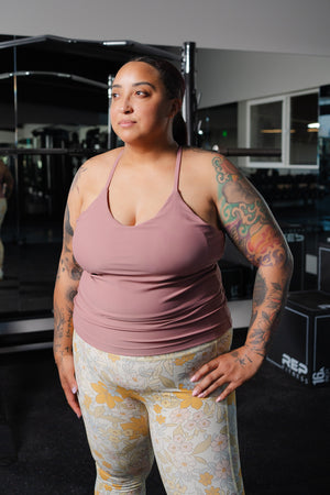 A classic longline full-length tank with a strappy back and luxurious ribbed fabric. The Fearless Tank is a flattering fit that has a comfortable and adaptable feel. Our infused padded bra adds more support and coverage while also having removable pads making this great for any low intense activity and casual wear.