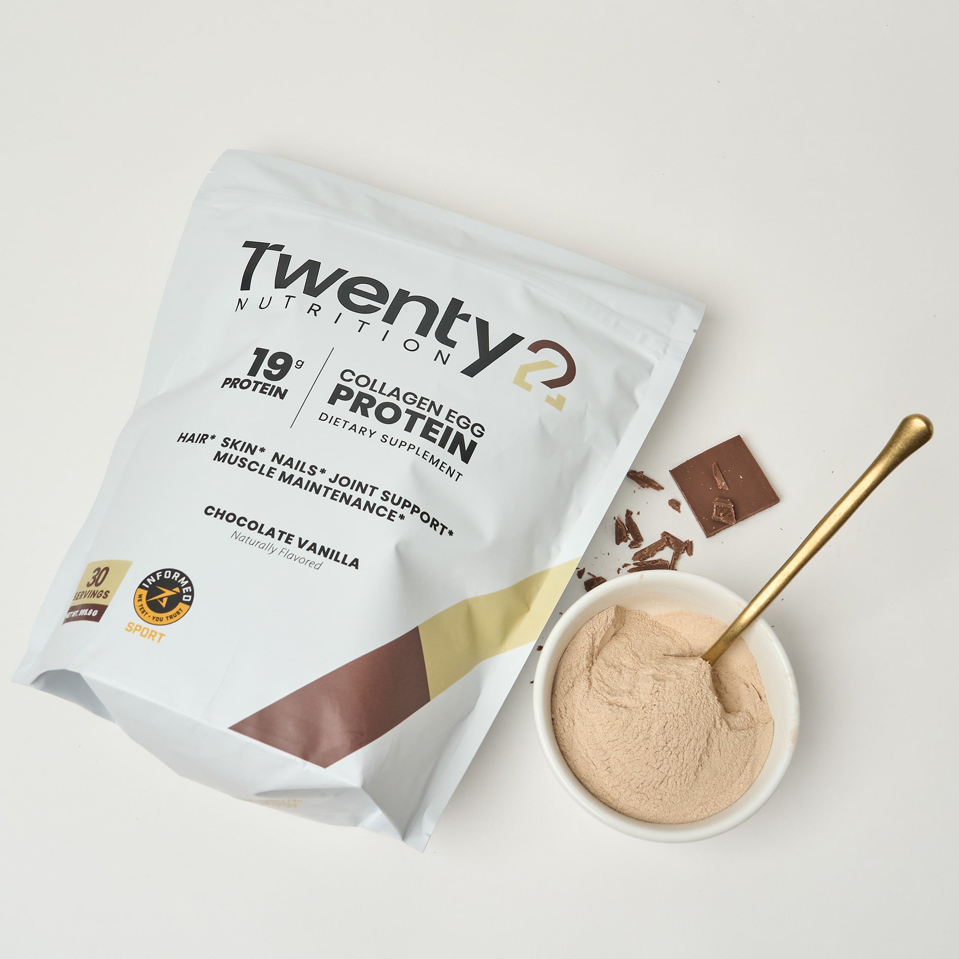 It's a protein powder that combines two complementary sources: collagen peptides and whole egg protein. Collagen is the most abundant structural protein in the body, found in your joints, tendons, ligaments, skin, hair, and nails. Egg protein is a complete, highly bioavailable protein with a full amino acid profile. Together, they cover both structural support and muscle recovery in a single formula — something a standard whey or plant protein can't do on its own.